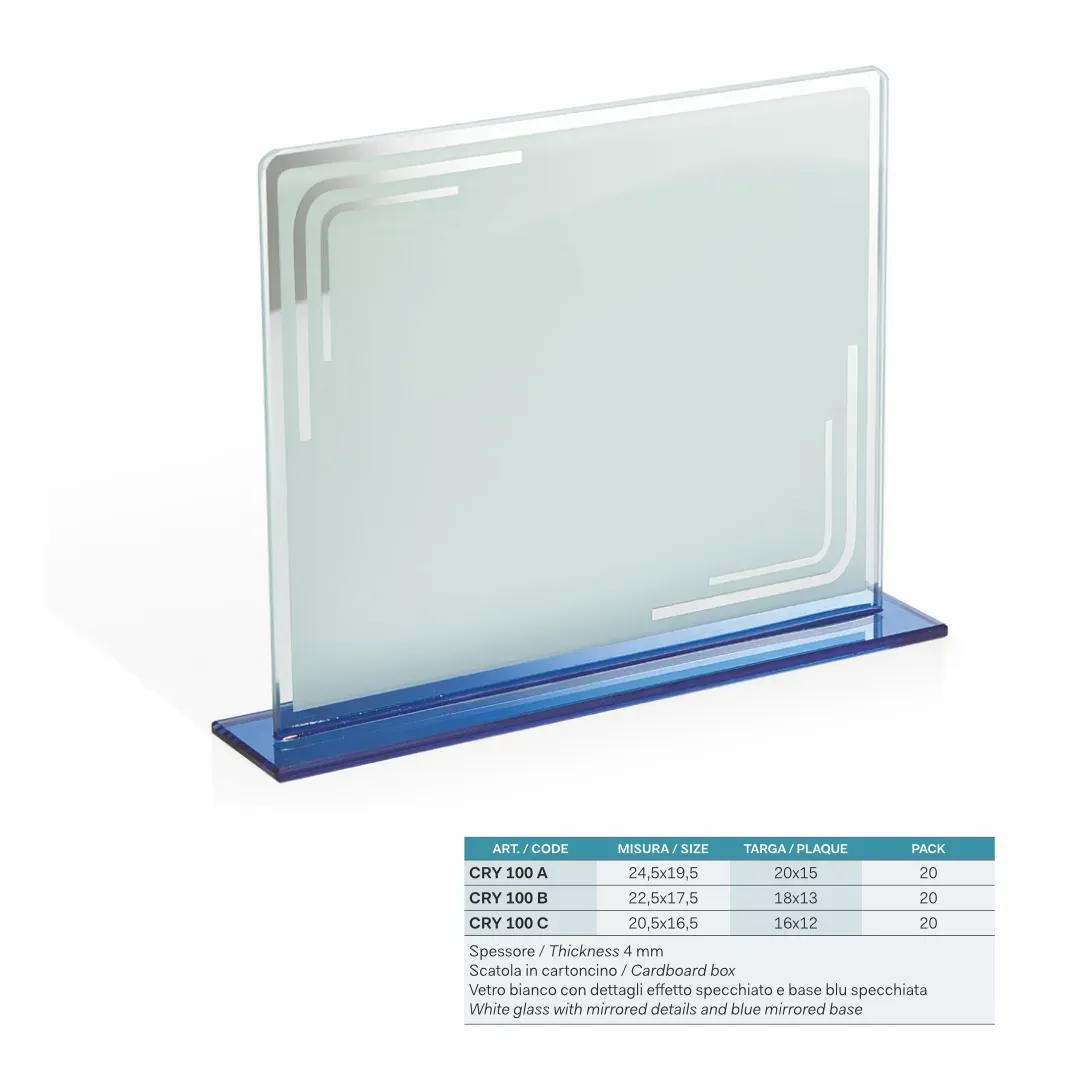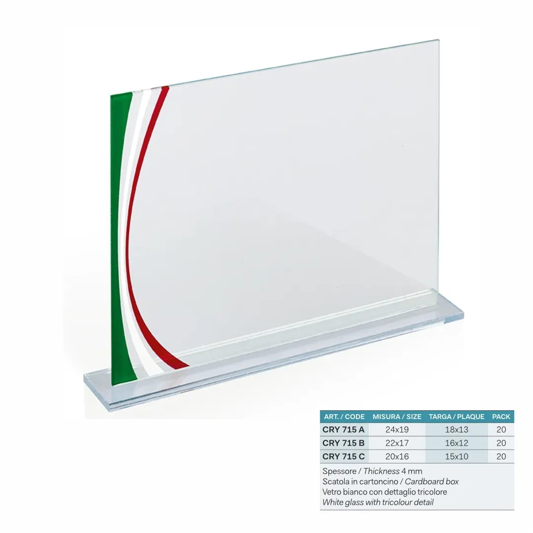 Le targhe, insieme agli altri oggetti personalizzati come i vetri e le cornici, permettono di celebrare i successi degli atleti e dei membri, creando un'identità visibile che rispecchia i valori e l'impegno del gruppo. La possibilità di inserire loghi a colori e messaggi personalizzati rende i nostri premi perfetti per riconoscere l'impegno e la dedizione mostrati nei vari campi di competizione. Con Eurotarghe di Brescia, ogni vostra premiazione si traduce in un momento di celebrazione unico, capace di lasciare un'impronta duratura nella memoria di chi vince e di chi osserva.