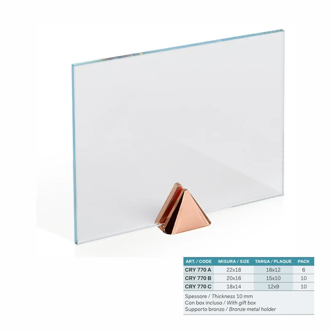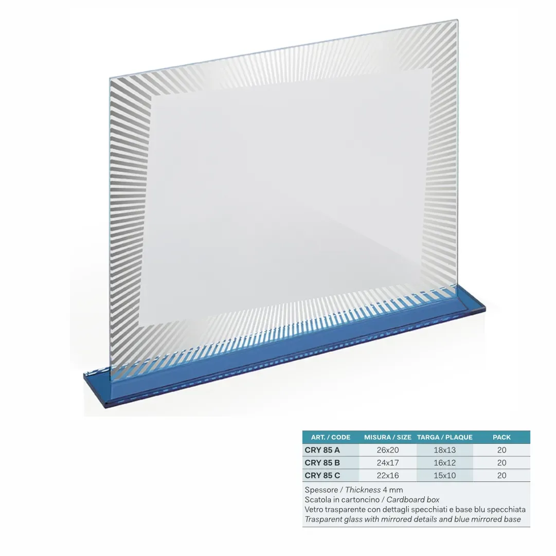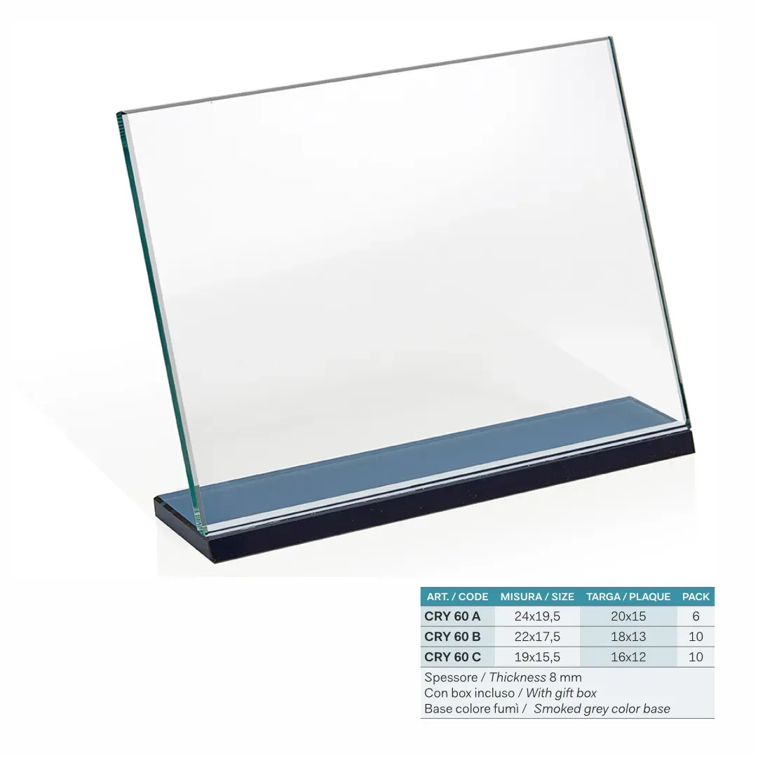 Grazie alla nostra esperienza e tecnologia avanzata, possiamo incidere testi, foto e loghi con la massima precisione e dettaglio, assicurando che ogni targa sia unica e rappresentativa dell'evento o dell'organizzazione che rappresenta. Le nostre targhe si trasformano così in premi che celebrano i successi con stile, aggiungendo un tocco di eleganza e semplicità a ogni occasione speciale.